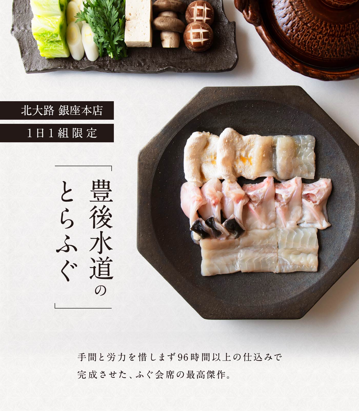 【銀座本店 一日一組限定】96時間熟成「豊後水道ふぐの特別会席」のご案内