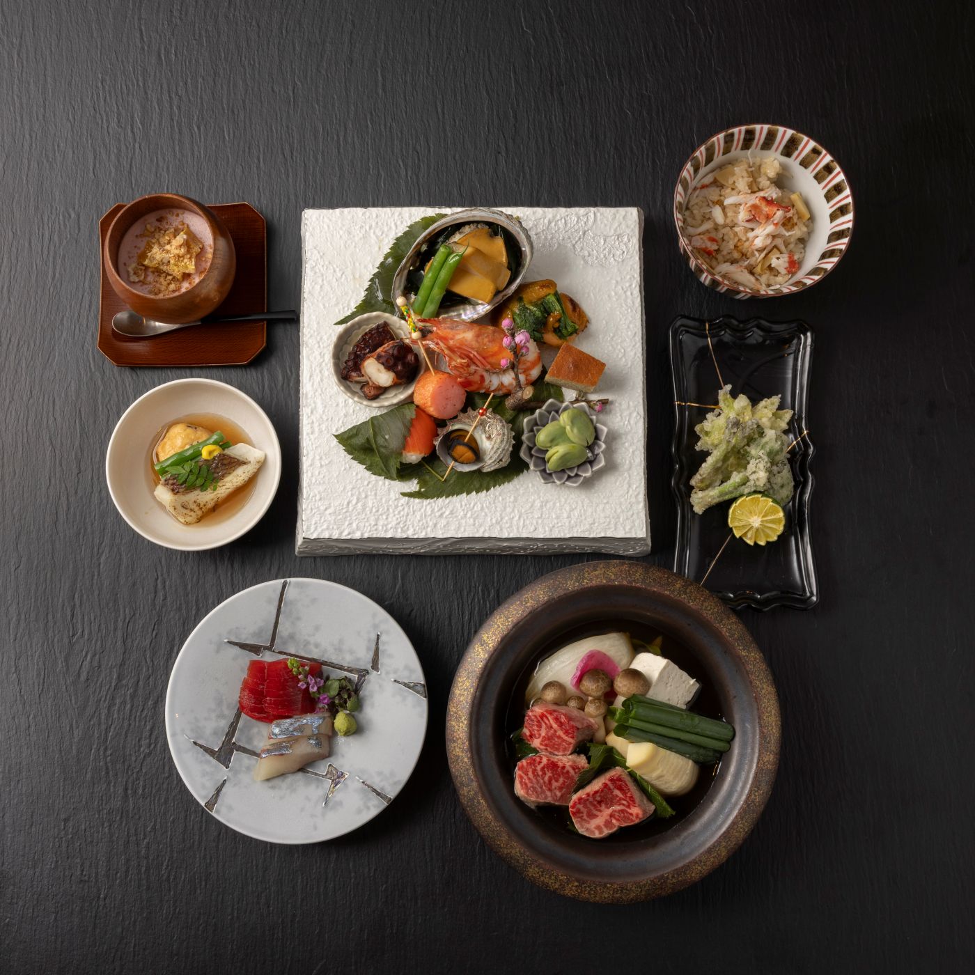 黒毛和牛を“お一人ずつ”鍋立てで味わう桜蒸しと、ズワイ蟹と筍の炊き込みご飯が主役。旬の前菜から甘味まで、落ち着いた完全個室で上質なおもてなしを叶えます。