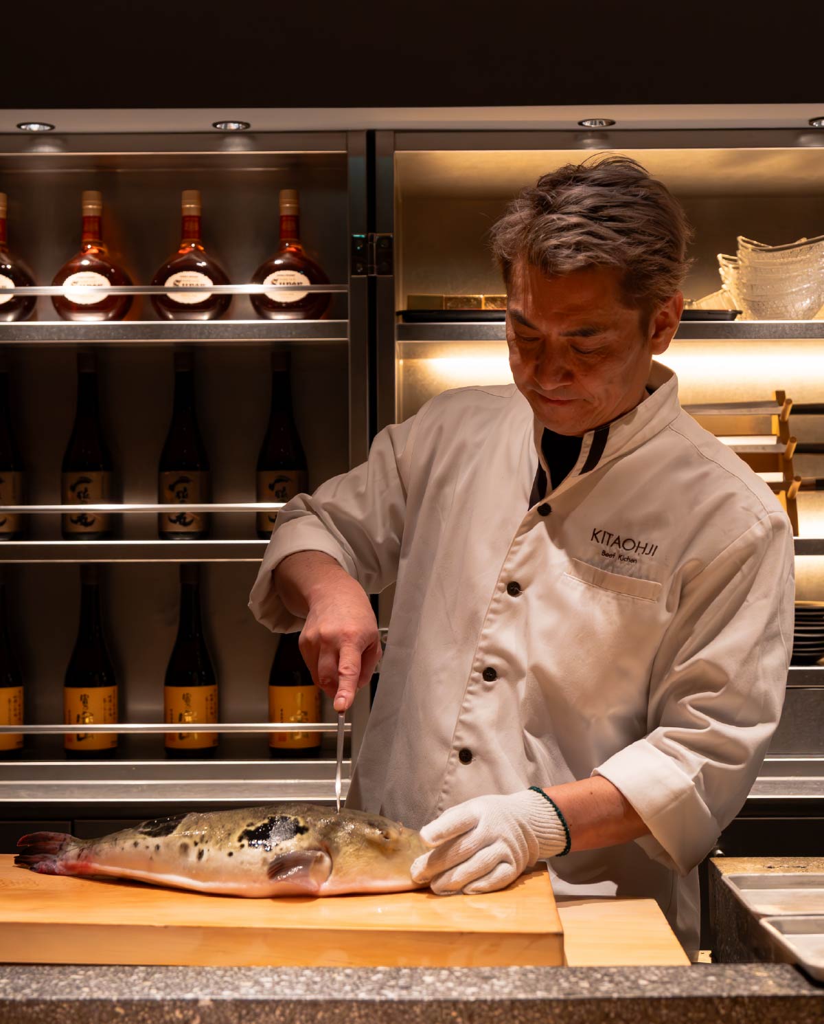 北大路倶楽部では、とらふぐの目利き40年の大分県のふぐ専門生産者である柳井商店さんから2〜3kgに育った良質なとらふぐのみを厳選し直送してもらっております。