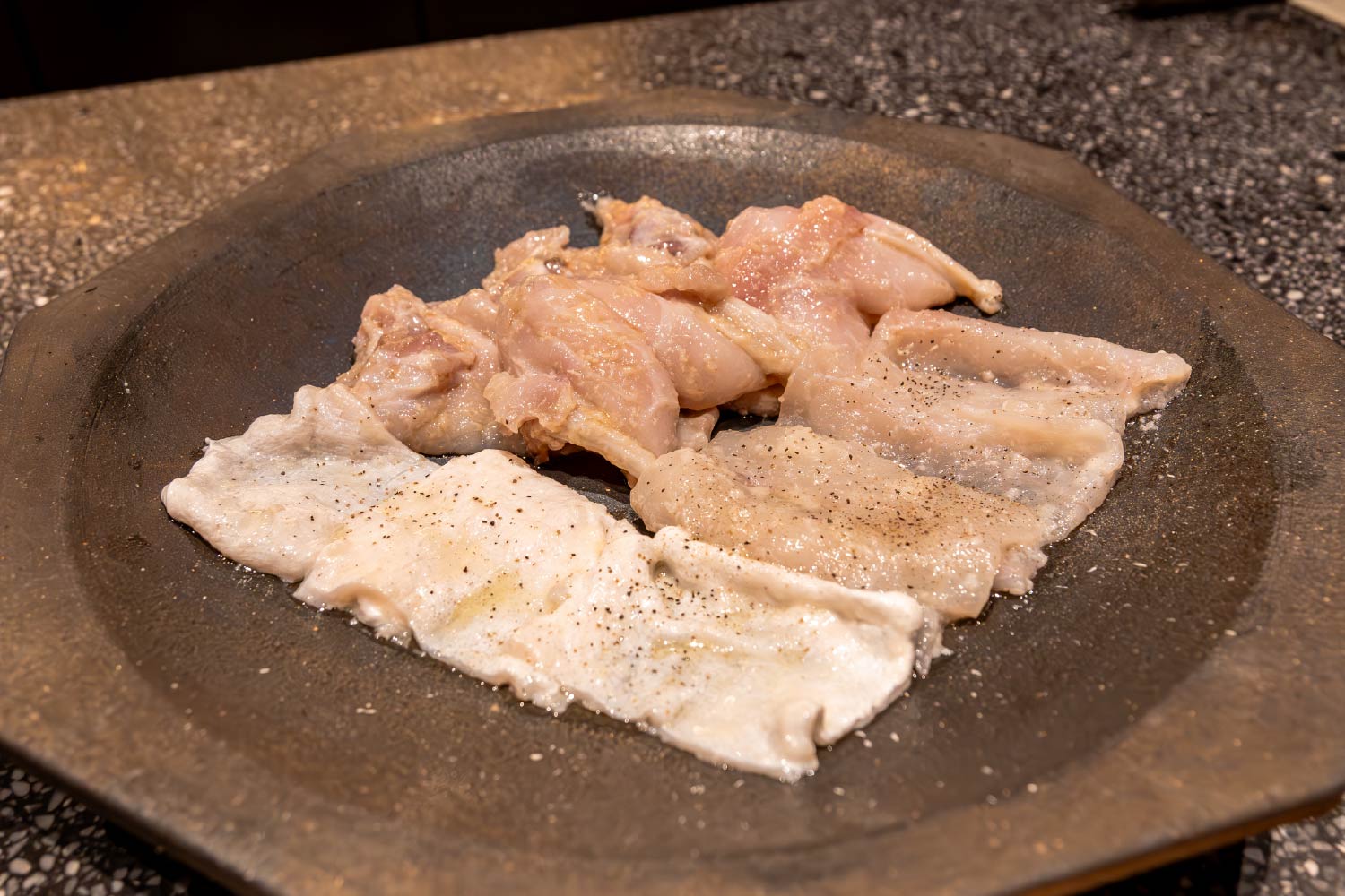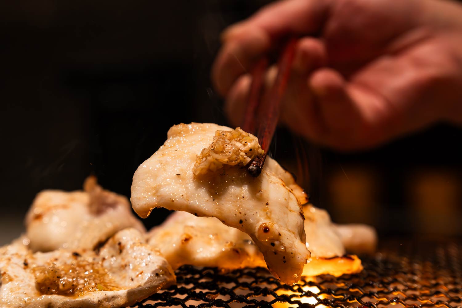鍋に入れるか、出汁取るか、で主に使われるとらふぐの“隠れ部位”を、焼肉のパンチ系モミダレで覚醒させ、香ばしく焼き上げました。オリジナルのネギだれ&青唐辛子ポン酢をまとえば、ふぐとは思えない“ホルモン級の破壊力”。