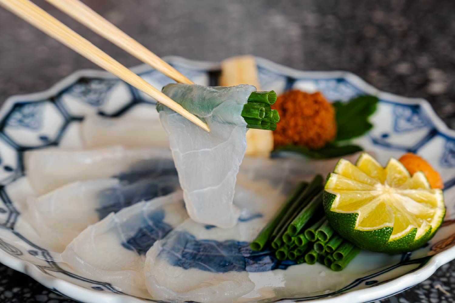 熟練の板前がとらふぐを見極め、96時間かけて丁寧に熟成させることで、とらふぐは驚くほど豊かに変化します。食感はブリブリとした硬さから、しっとりとした柔らかさへ。アミノ酸量が150%増加し旨味、香りまでふくよかに膨らみます。